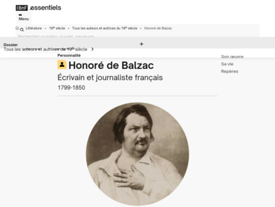 Gallica de la BnF propose dans ses Essentiels de la littérature un dossier sur Balzac, écrivain, connu notamment pour ses longues descriptions, et aujourd’hui considéré comme le plus grand romancier français de tous les temps. Il est l’auteur d’une somme monumentale qui, en 1842, prend pour titre : La Comédie humaine, inachevée à sa mort en 1850.