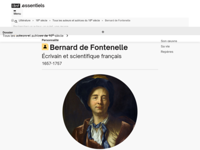 La BnF propose un dossier sur le philosophe Bernard de Fontenelle. Cet homme mondain, mais savant est emblématique de la transition du Grand siècle au Siècle des Lumières.
