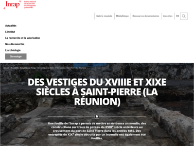 L'Inrap propose un reportage vidéo consacré à une fouille de l'Inrap qui a permis de mettre en évidence un moulin, des constructions sur trous de poteau du XVIIIe siècle antérieurs au creusement du port de Saint Pierre dans les années 1850. Cela témoigne d'une activité économique et militaire au temps des premiers colons. (D'après http://www.inrap.fr)