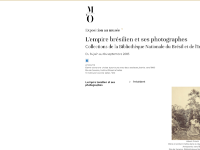 A l'occasion de l'année du Brésil en France en 2005, le musée d'Orsay consacre une exposition à la photographie brésilienne du XIXe s. Alors que les photographies prises en Égypte ou en Chine au XIXe siècle ont été largement diffusées, celles du Brésil sont quasiment inconnues du public français. Le musée d'Orsay dévoile la richesse des fonds de l'Institut Moreira Salles et de la Bibliothèque nationale du Brésil, constitués par la collection personnelle de l'empereur Dom Pedro II.