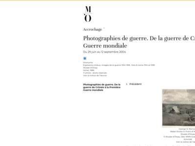 Dès les années 1850, les photographes font leur apparition aux alentours des champs de bataille où ils vont peu à peu supplanter les peintres d'histoire. En témoignent, dans les collections du musée d'Orsay, les images de trois des conflits majeurs de la deuxième moitié du XIXe et du début du XXe s., présentées lors d'un accrochage en 2004.