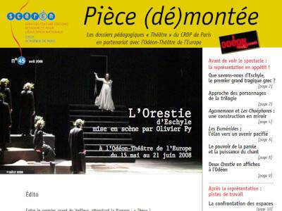 Dossier pédagogique de la Collection Pièce (Dé)montée consacré à "L'Orestie" d'Eschyle et mis en scène par Olivier Py. Le roi Agamemnon, pour assurer à la flotte grecque un vent propice au cours de sa traversée vers Troie, avait sacrifié aux dieux sa fille Iphigénie. Dix ans après, dès son retour victorieux dans son palais, son épouse Clytemnestre le tue, avant de tomber à son tour sous les coups de son fils Oreste. Ce dossier offre des pistes d’interprétation pour comprendre de quelle manière le travail sur la langue, le chant et le geste dessine l’espace tragique voulu par le metteur en scène. Le dossier propose également des rapprochements avec d’autres mises en scène de l’Orestie et plusieurs réécritures de la tragédie.