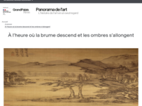 Comment le regard du spectateur est-il invité à se promener dans le paysage ? Ce rouleau vertical peint à l’encre sur papier porte la signature de Wen Zhengming, l’une des figures dominantes de la peinture chinoise au XVIe siècle. On y retrouve les deux éléments qui définissent le paysage – shanshui – dans la tradition picturale chinoise : montagne (shan ) et eau (shui ).